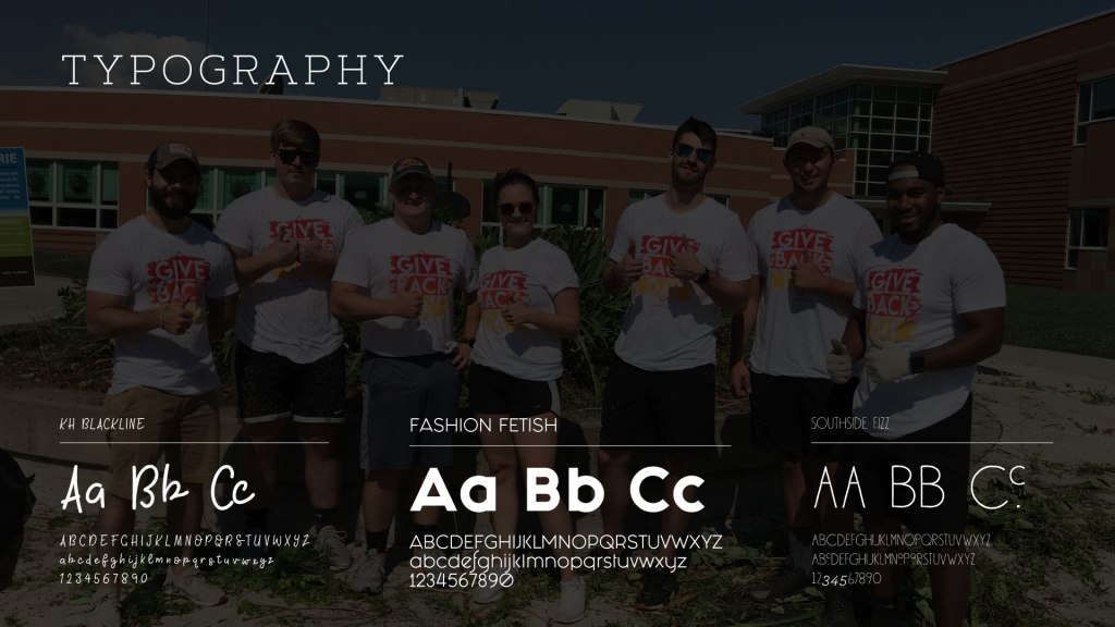Each year since the creation of this event I change elements of the campaign to align with any changes in Abstratk’s brand and to keep the design for Give Back Day consistent with current trends. I started 2019’s branding by looking at the typefaces and colors and making some small adjustments.