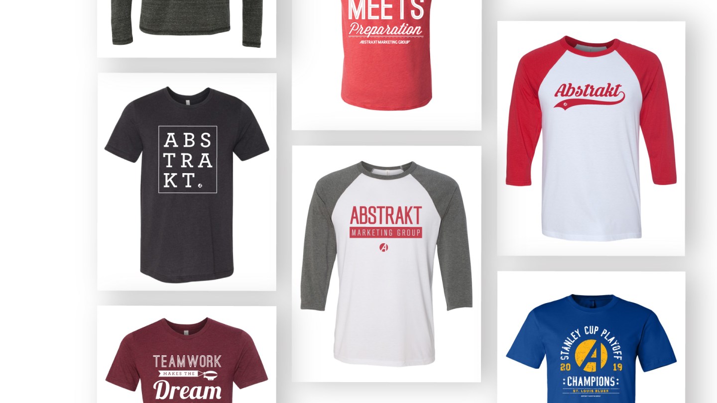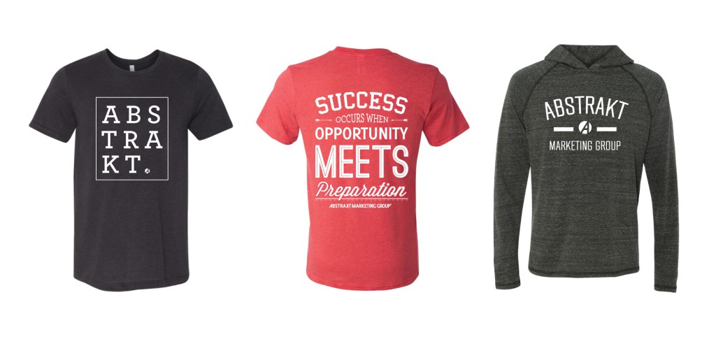 One big expense that Abstrakt’s marketing department was consistently facing was t-shirt costs. Abstrakt has several big events throughout the year where shirts are provided and they wanted to offer designs for employees to wear around the office. As the company grew, so did the amount of t-shirts needed. I was responsible for gathering vendor pricing, creating all shirt designs and ordering the merchandise.